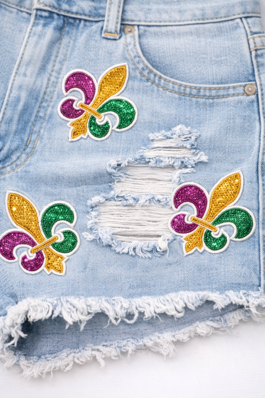 Sold outMardi Gras Fleur de Lis Denim Shorts
