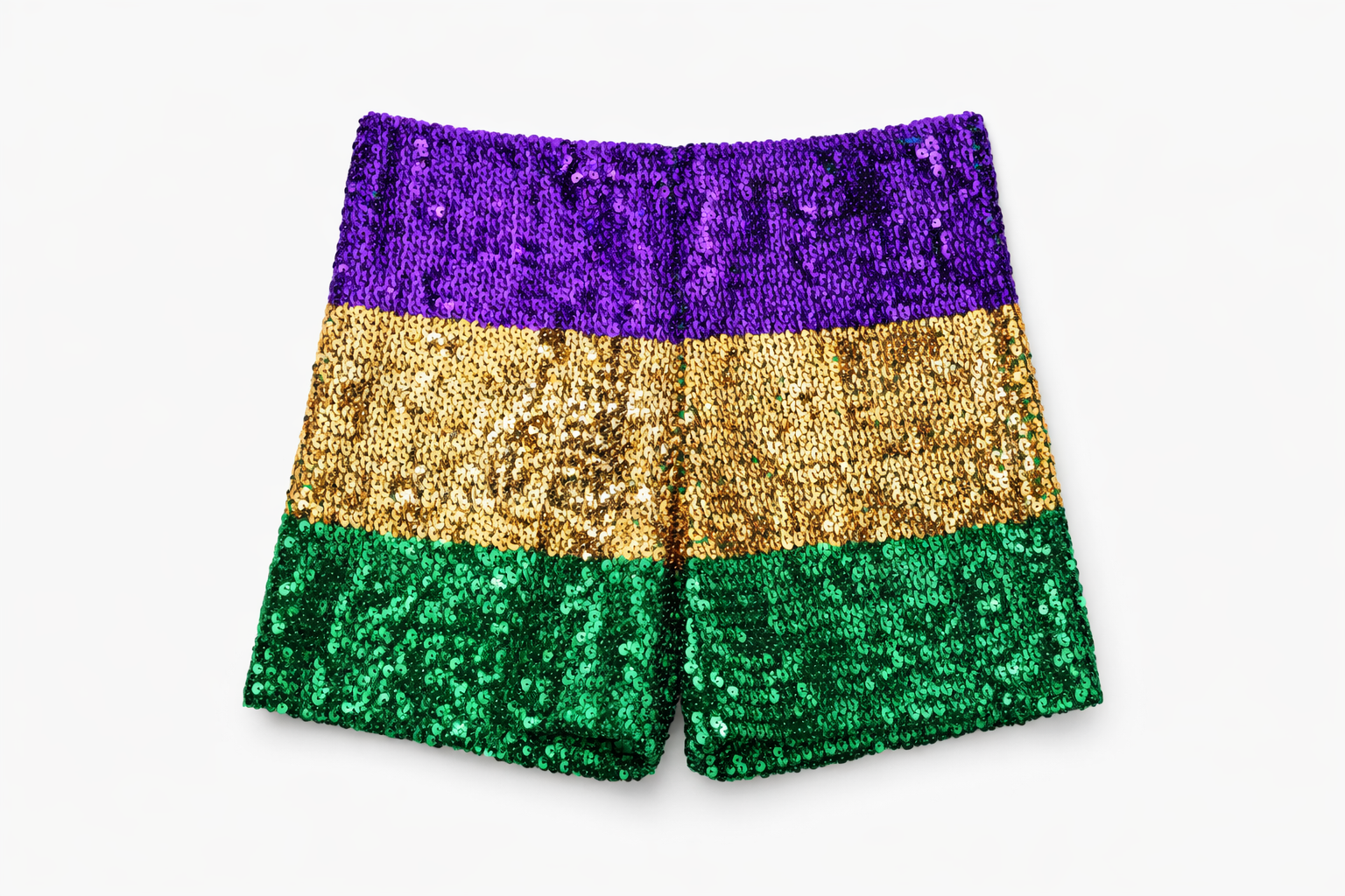 Elevate your Mardi Gras look with these luxe sequin shorts designed to shine from parade routes to late night celebrations. Crafted with a comfortable stretch fit, these shorts offer effortless movement while maintaining a flattering silhouette that feels as good as it looks.